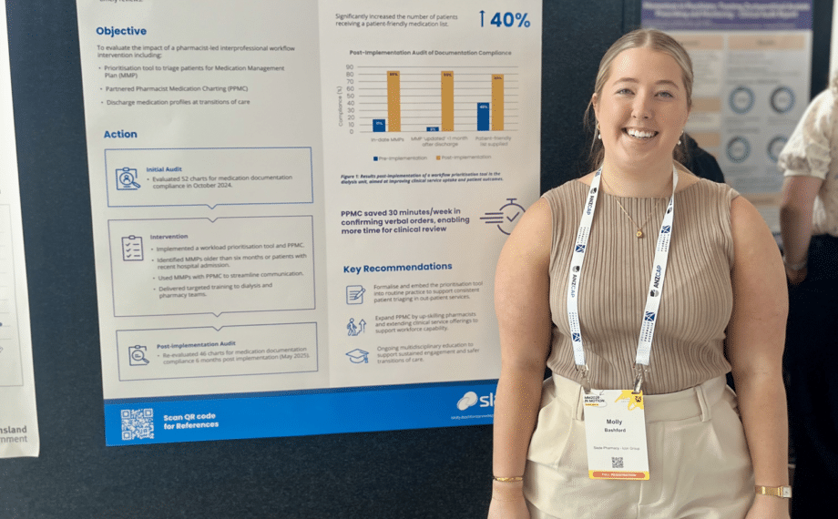 Across both conferences, Slade pharmacists showcased work that directly contributes to safer, more consistent and patient-centred pharmacy services.