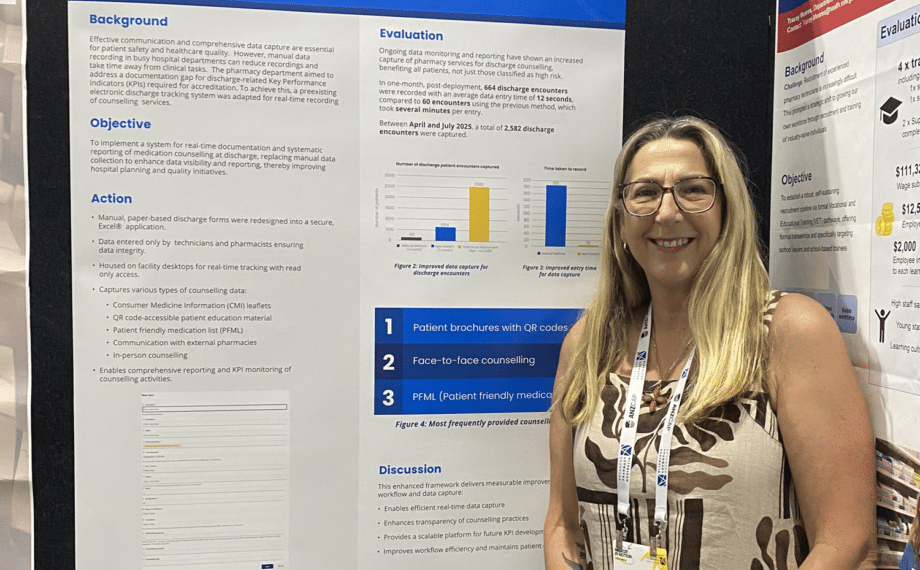 From enhancing medication safety in cancer care and developing advanced digital tools, to improving antimicrobial reporting and strengthening transitions of care, each abstract highlights Slade’s commitment to delivering best-practice pharmacy services underpinned by robust governance.